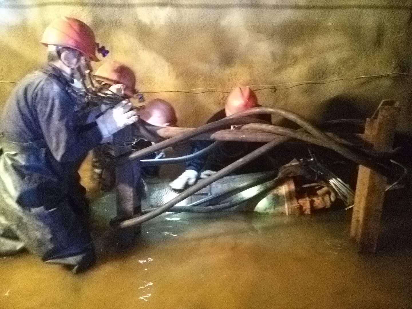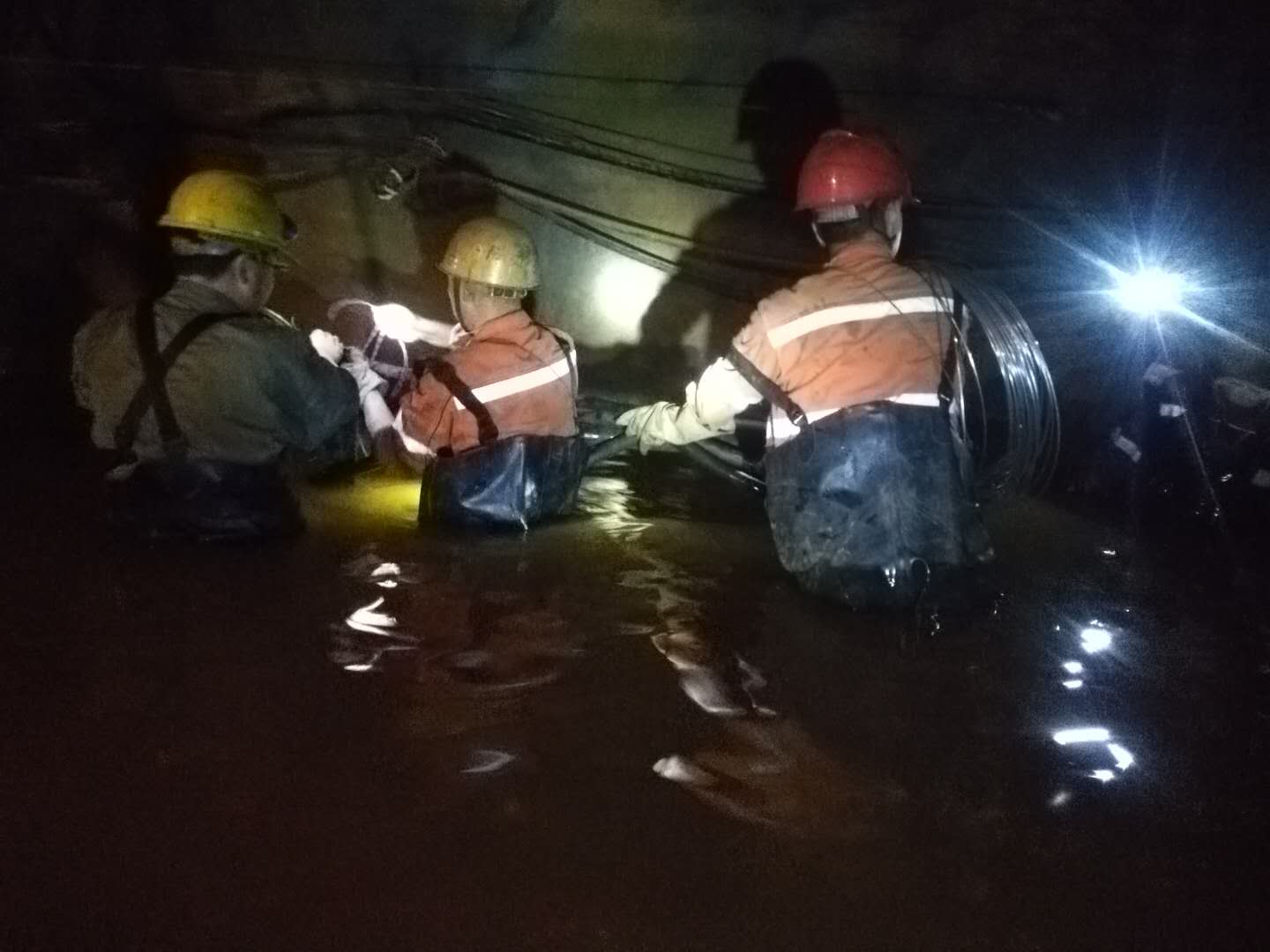 1700米中段,2公里多的上班路變成了一片汪洋,巷道、生產設備被洪水淹沒。由于水流湍急,水位持續上漲,救援搶險工作進展緩慢。危難關頭,干部職工脫下身上的衣物,就淌進了齊腰深的洪流中,一路摸索前行,設法向生產設備靠近,最終將被淹沒的設備搶救出來。