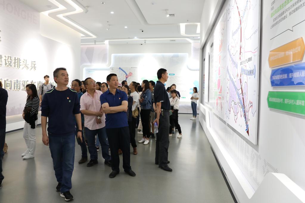 在紅河展覽館,黨員干部在講解員的帶領下,認真觀看了《大美紅河》宣傳片,參觀了3大展廳。通過觀看展廳里的一幅幅圖片、一段段影片、一件件展品,大家充分了解了紅河州的自然風光、風土人情、民族文化、發展戰略、總體規劃等;通過親身體驗數字沙盤、動感科技、4D影像等電子科技互動設備,大家對家鄉的發展成就倍感自豪。