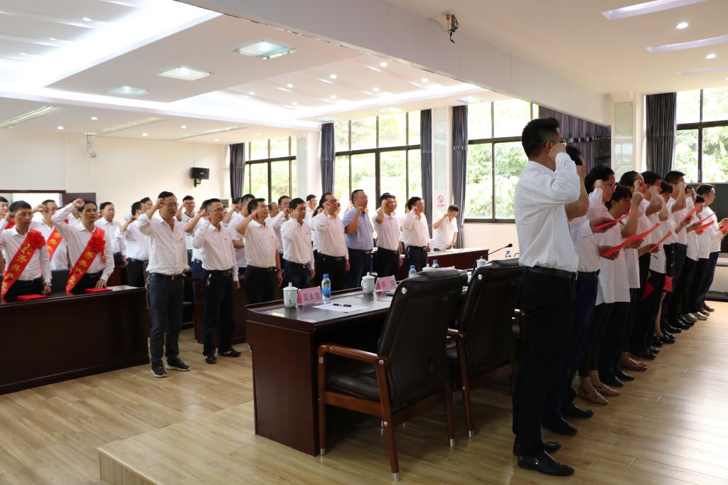 先進黨支部、優秀共產黨員代表在會上作了交流發言。預備黨員和全體參會黨員面對黨旗莊嚴宣誓。