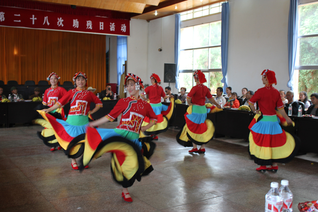 隨后,還進行了文藝表演,把助殘日活動推向了高潮。老廠政企、農(nóng)村的群眾演員表演了《舞龍》《士兵小唱》《彩云之南》《彝家狂歡》等精彩的歌舞節(jié)目;個舊市殘聯(lián)志愿者表演了手語《最好的未來》,用無聲的語言表達了對美好未來的憧憬和向往;羊壩底福利廠殘疾職工獨唱歌曲《母親》,抒發(fā)了對社會、對殘疾人的感激之情,整場精彩的表演,贏得了觀眾雷鳴般的掌聲。