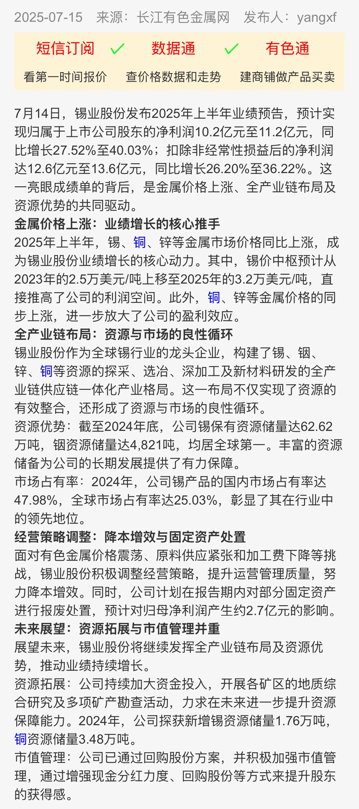 上一條:證券日報:錫價突破27萬元/噸 AI浪潮下行業有望維持高景氣度
